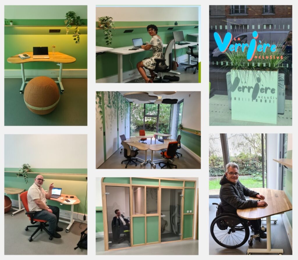 La Verrière inclusive propose 15 postes de travail à l’ergonomie évolutive et permet l’accès à l’ensemble des espaces de socialisation de Silver innov’ : terrasses, espace restauration, salles de réunion…